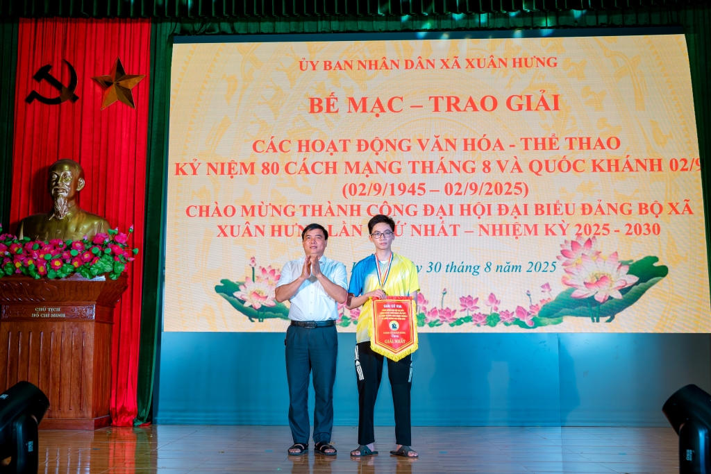 Album ảnh Bế mạc – trao giải và công diễn văn nghệ nhân dịp kỷ niệm 80 năm cách mạng tháng 8 và Quốc khánh 02/9; chào mừng thành công Đại hội Đại biểu Đảng bộ xã Xuân Hưng lần thứ I, nhiệm kỳ 2025-2030 01/09/2025 82 Lượt xem