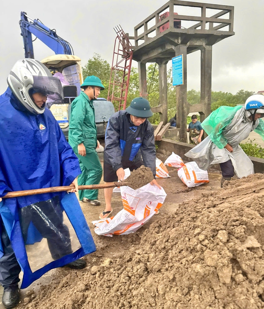 Đặc biệt, vào sáng ngày 29/9/2025, tại cống Bối số 2 thuộc tuyến đê Hữu Sò đã xảy ra sự cố không đóng được cửa cống, khiến nước mặn từ sông Sò tràn vào nội đồng, đe dọa trực tiếp đến sản xuất và đời sống nhân dân các thôn miền Xuân Hưng, Xuân Vinh. Ngay khi phát hiện sự cố, chính quyền xã đã huy động lực lượng tại chỗ cùng nhân dân địa phương tổ chức ứng cứu khẩn cấp. Đồng chí Phạm Xuân Vũ – Phó Chủ tịch UBND xã trực tiếp có mặt tại hiện trường chỉ đạo xử lý; cùng tham gia còn có Ban Chỉ huy Quân sự xã, ông Đỗ Trường Vỹ – Trưởng cụm thủy nông Đông Nê, chuyên viên Phòng Kinh tế xã phụ trách PCTT & TKCN, và lực lượng công nhân Công ty TNHH MTV Khai thác công trình thủy lợi Xuân Thủy.