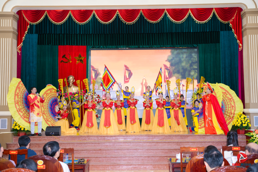 Đ/c Trần Văn Vỵ – Bí thư Đảng ủy, Chủ tịch HĐND xã phát biểu chúc mừng, thông tin về tình hình phát triển kinh tế xã hội của xã Xuân Hưng và những chủ trương, định hướng lớn của Đảng bộ xã giai đoạn 2025-2030