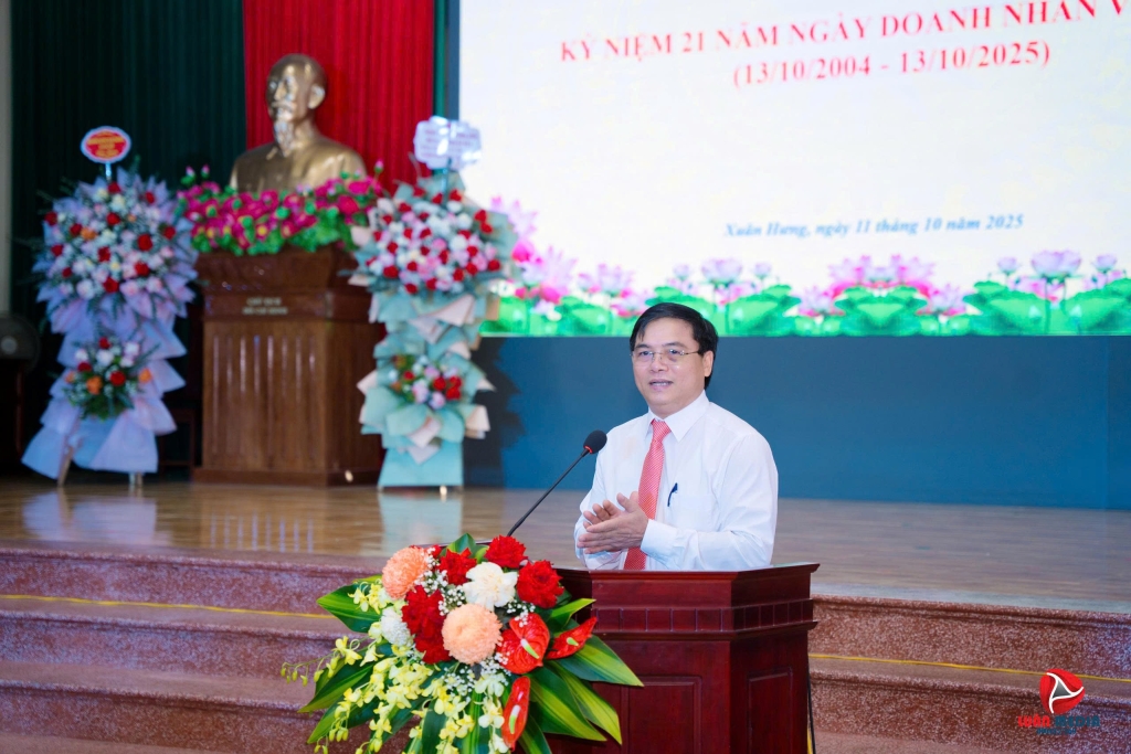 Phát biểu tại Hội nghị, đồng chí Trần Văn Vỵ – Bí thư Đảng ủy, Chủ tịch HĐND xã đã gửi lời chúc mừng tốt đẹp nhất tới cộng đồng doanh nghiệp, doanh nhân nhân Ngày Doanh nhân Việt Nam; đồng thời ghi nhận, đánh giá cao những đóng góp quan trọng của đội ngũ doanh nhân, doanh nghiệp đối với sự phát triển kinh tế – xã hội của địa phương trong thời gian qua. Đồng chí nhấn mạnh, trong nhiệm kỳ 2025 – 2030, Đảng bộ xã Xuân Hưng sẽ tiếp tục phát huy truyền thống đoàn kết, đổi mới, sáng tạo, tập trung lãnh đạo phát triển toàn diện trên tất cả các lĩnh vực. Trọng tâm là công tác quy hoạch, tạo không gian phát triển mới nhằm phát huy tiềm năng, lợi thế sau sáp nhập tạo khả năng bứt phá đưa Xuân Hưng sớm trở thành xã có công nghiệp hiện đại, thân thiện với môi trường; có dịch vụ phát triển, với dịch vụ vận tải thủy là ngành mũi nhọn; có nông nghiệp sản xuất hàng hóa, an toàn sinh học gắn với bảo vệ môi trường sinh thái. Phấn đấu đến năm 2030 giá trị sản xuất CNDV đạt 3.200 tỷ đồng, chiếm 90% trong cơ cấu giá trị sản xuất toàn xã, toàn xãxã đạt NTM kiểu mẫu.