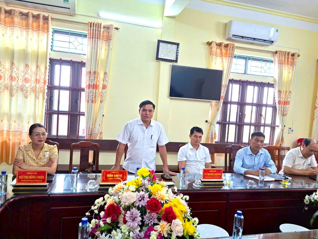 Tham dự buổi gặp có các đồng chí: Trần Văn Vỵ – Bí thư Đảng ủy, Chủ tịch HĐND xã; Bùi Thị Hồng Chiên – Phó Bí thư Thường trực Đảng ủy; Vũ Trường Khánh – Phó Bí thư Đảng ủy, Chủ tịch UBND xã; cùng Lãnh đạo Văn phòng Đảng ủy, Phòng Văn hóa – Xã hội xã.
