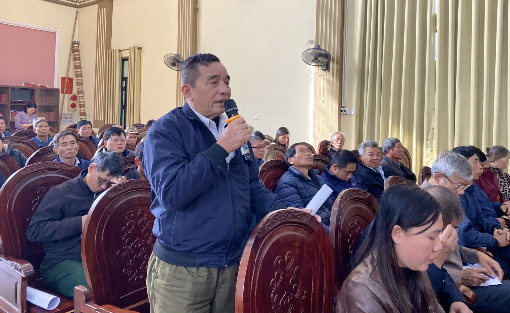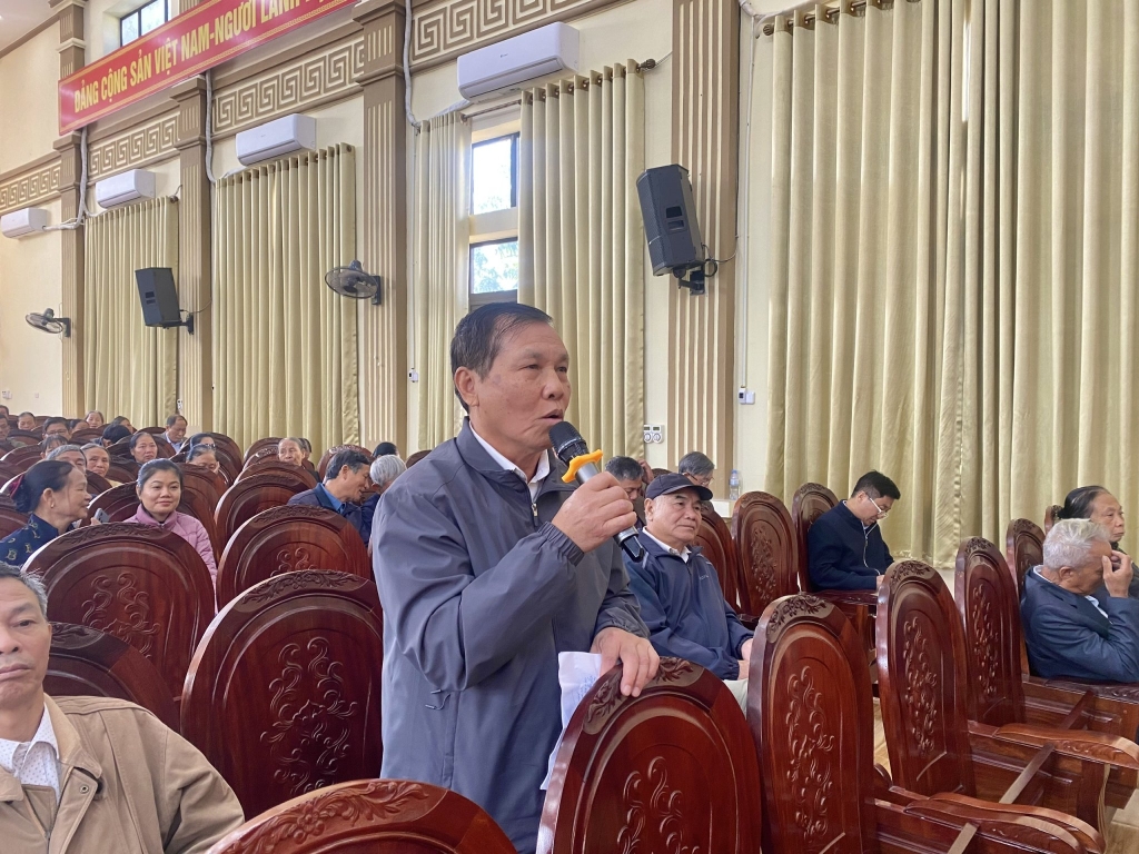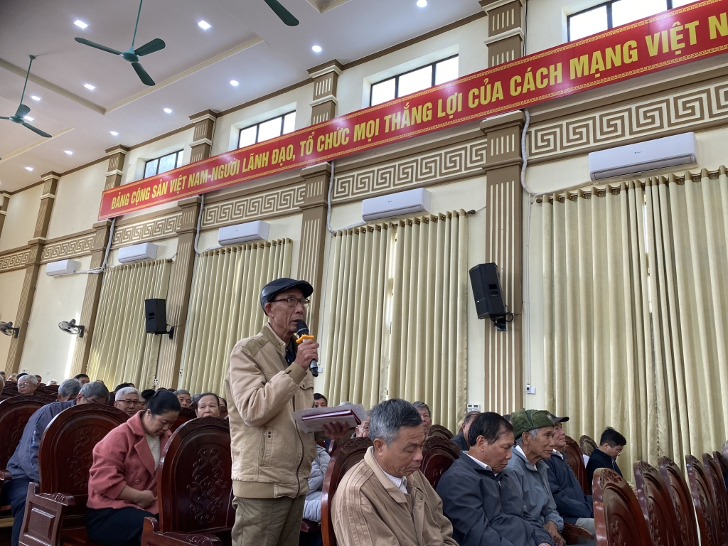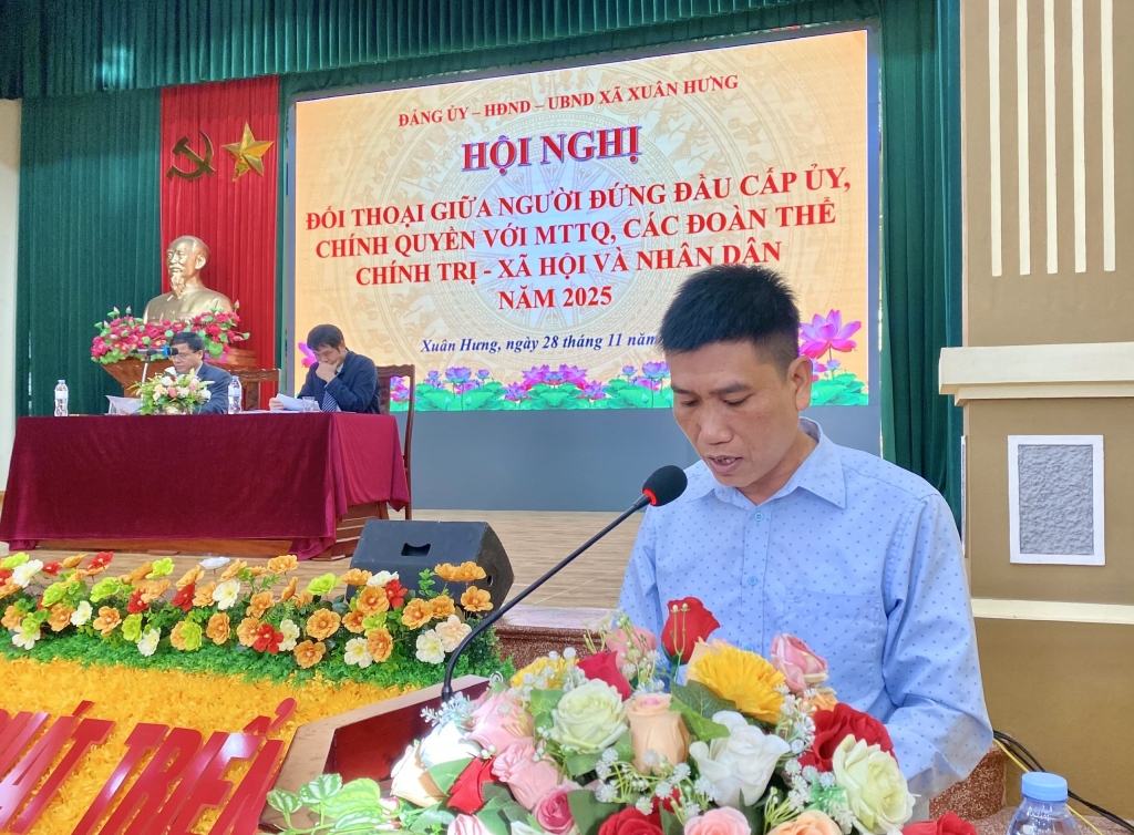 Trên tinh thần dân chủ, cởi mở, tại hội nghị đối thoại đã có 16 lượt ý kiến kiến nghị với chính quyền địa phương liên quan đến lĩnh vực: công tác xây dựng Đảng, nâng cao chất lượng Đang viên, việc thực hiện học tập quán triệt Nghị quyết cho Đang viên cần được tổ chức tập trung, việc trao huy hiệu Đảng cho các Đảng viên cao tuổi; nâng cao chất lượng kiểm tra giám sát trong Đảng bộ; công tác cán bộ , các vấn đề liên quan sau khi thực hiện chính quyền địa phương 2 cấp. Ý kiến về công tác quản lý và sử dụng đất đai, bảo vệ môi trường, các đại biểu đề nghị đi rời vị trí bãi rác khu vực xóm 7 miền Xuân Vinh; các ý kiến liên quan đến sản xuất nông nghiệp như : đề nghị có phương án giải quyết các diện tích đất nông nghiệp xen kẹt, quan tâm xây dựng, sửa chữa nâng cấp 1 số tuyến đường giao thông, gia cố, kè một số bờ sông cấp 2 có dấu hiệu sạt lở; UBND xã cần quan tâm hơn nữa trong phát triển nông nghiệp, xây dựng thêm các mô hình sản xuất mang lại hiệu quả kinh tế cao cho người dân, tạo điều kiện cho người dân thuê đất mở rộng cơ sở sản xuất kinh doanh; Các ý kiến liên quan đến chế độ chính sách đối với người có công, hỗ trợ người dân tham gia bảo hiểm y tế đáp ứng đủ tiêu chí xây dựng xã NTM kiểu mẫu; các ý kiến liên quan đến xây dựng đời sống văn hóa ở khu dân cư như việc cưới, việc tang; cấp ủy chính quyền quan tâm nâng cao chất lượng hệ thống loa truyền thanh tại các miền để người dân kịp thời nắm bắt được công tác tuyên truyền chủ trương đường lối chính sách pháp luật của nhà nước và các sự kiện quan trọng của địa phương,….