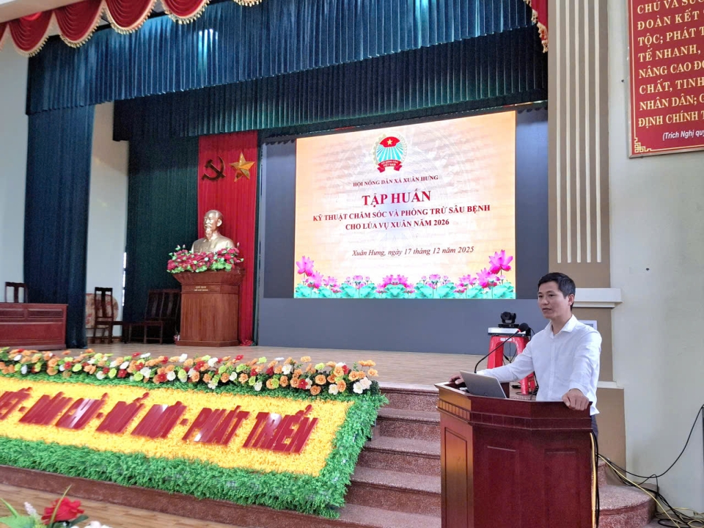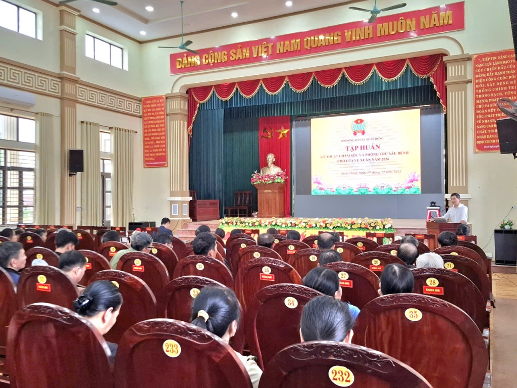 Chiều ngày 17/12/2025, Hội Nông dân xã Xuân Hưng tổ chức Hội nghị tập huấn chuyển giao khoa học kỹ thuật về chăm sóc và phòng trừ sâu bệnh cho lúa vụ xuân năm 2026 cho hội viên nông dân trên địa bàn xã.