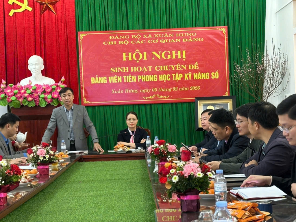 Chi bộ Cơ quan Đảng gồm 35 đảng viên đang công tác tại 05 cơ quan: Văn phòng Đảng ủy, Ban Xây dựng Đảng, Ủy ban Kiểm tra Đảng ủy, Ủy ban Mặt trận Tổ quốc và Hội đồng Nhân dân xã. Chuyển đổi số đang diễn ra mạnh mẽ trên tất cả các lĩnh vực của đời sống xã hội, đòi hỏi mỗi đảng viên phải chủ động đổi mới tư duy, nâng cao nhận thức và kỹ năng ứng dụng công nghệ số trong thực hiện nhiệm vụ được giao. Do vậy, nhận thức của cán bộ, đảng viên chi bộ các cơ quan đảng về vai trò, ý nghĩa của chuyển đổi số và kỹ năng số trong thực hiện nhiệm vụ chính trị từng bước được nâng lên; ý thức ứng dụng công nghệ thông tin trong công tác Đảng, quản lý, điều hành và thực hiện nhiệm vụ chuyên môn ngày càng rõ nét. Việc triển khai các nhiệm vụ liên quan đến ứng dụng công nghệ thông tin, chuyển đổi số được lồng ghép với thực hiện nhiệm vụ chính trị của từng cơ quan, từng đảng viên; qua đó góp phần nâng cao hiệu quả công tác, bảo đảm thông tin phục vụ sự lãnh đạo, chỉ đạo của cấp ủy được kịp thời, chính xác. Đến nay, 100% cán bộ, đảng viên trong chi bộ đã có tài khoản đăng nhập hệ thống điều hành tác nghiệp của Đảng và hệ thống quản lý văn bản và điều hành của khối chính quyền. Thực hiện việc tiếp nhận, xử lý văn bản đến, phát hành văn bản đi và tổng hợp báo cáo trên môi trường điện tử theo quy định. Các phần mềm, nền tảng số cơ bản phục vụ công tác văn phòng như: Microsoft Office, Google WorkSpace, Unikey, trình duyệt Web, phần mềm diệt virus, các công cụ chatbot AI, bộ phần mềm giao tiếp, trò chuyện online như: Zalo, Facebook, Mocha, Viber… đã và đang được sử dụng hiệu quả trong quá trình xử lý công việc, trao đổi thông tin và phối hợp thực hiện nhiệm vụ giữa các cơ quan, đơn vị. Trong thời gian qua, cán bộ, đảng viên trong Chi bộ đã từng bước ứng dụng các nền tảng số trong công tác giao tiếp, trao đổi thông tin và tuyên truyền phục vụ nhiệm vụ chính trị của cơ quan, đơn vị cũng như của địa phương. Các công cụ giao tiếp trực tuyến như Zalo, Facebook và các nền tảng số khác được sử dụng thường xuyên trong trao đổi công việc, phối hợp giữa các cơ quan, đơn vị, góp phần rút ngắn thời gian xử lý công việc và nâng cao hiệu quả điều hành. Đối với công tác tuyên truyền, cán bộ, đảng viên tích cực tham gia xây dựng, vận hành Fanpage “Xuân Hưng quê hương tôi” phục vụ công tác thông tin, tuyên truyền các chủ trương của Đảng, chính sách, pháp luật của Nhà nước, các nhiệm vụ chính trị, sự kiện quan trọng của địa phương. Việc sử dụng nền tảng số trong tuyên truyền đã góp phần mở rộng kênh thông tin, tăng khả năng tiếp cận của cán bộ, đảng viên và Nhân dân đối với các nội dung tuyên truyền chính thống.