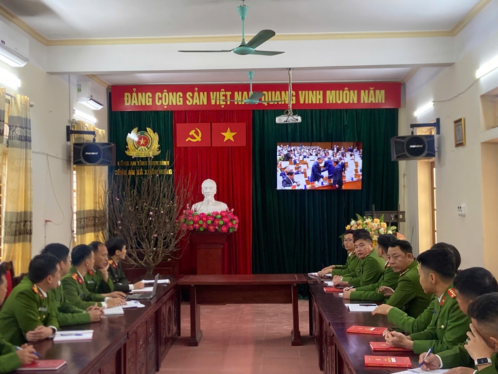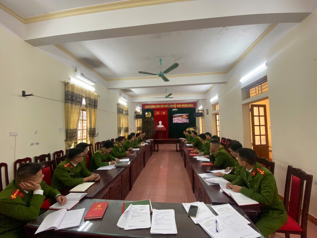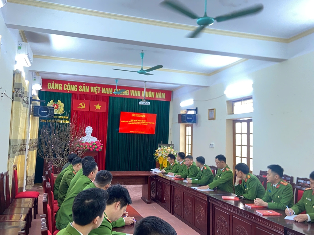 Quang cảnh Hội nghị tại điểm cầu Phòng họp Trụ sở Công an xã