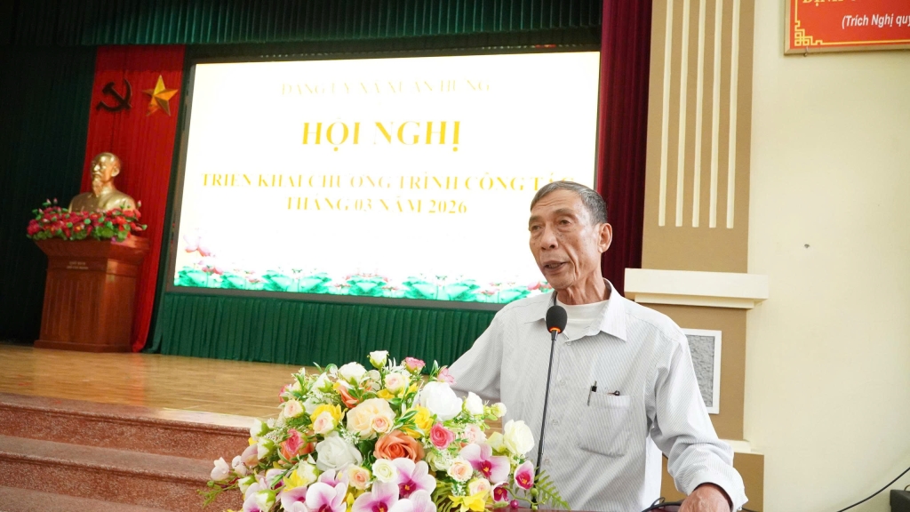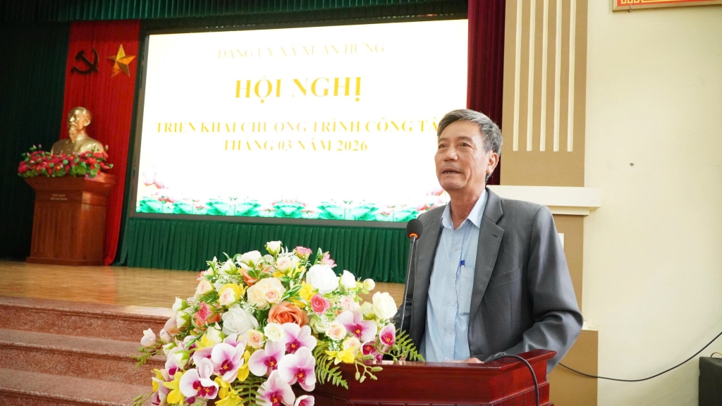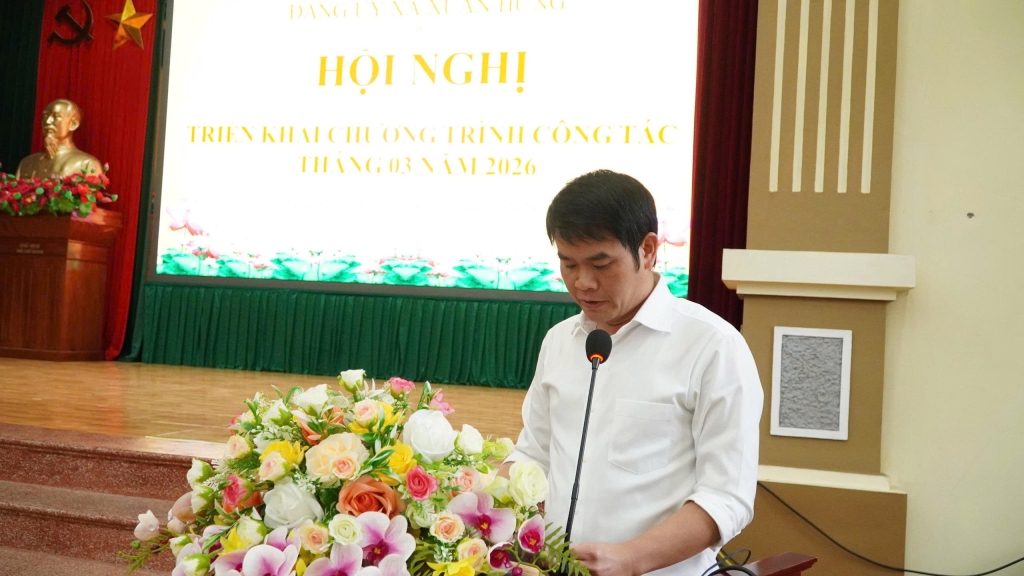 Phát biểu kết luận hội nghị, đồng chí Trần Văn Vỵ- Bí thư Đảng ủy, Chủ tịch HĐND xã đã chỉ rõ những nguyên nhân dẫn đến những tồn tại, hạn chế, đồng thời nhấn mạnh: Tháng 3 là thời điểm có nhiều nhiệm vụ quan trọng, yêu cầu các đồng chí trong Ban Thường vụ và lãnh đạo các cơ quan, các ngành, đoàn thể nêu cao tinh thần trách nhiệm, bám sát cơ sở, sâu sát địa bàn, chủ động tham mưu và tổ chức thực hiện hiệu quả các nhiệm vụ được giao; đồng thời tăng cường công tác kiểm tra, đôn đốc, đảm bảo mọi nhiệm vụ được triển khai đồng bộ, chất lượng, hiệu quả. Về một số nhiệm vụ trọng tâm trong thời gian tới, đồng chí Bí thư Đảng ủy xã nhấn mạnh: tiếp tục quán triệt, triển khai các nghị quyết của Trung ương, Tỉnh ủy và Nghị quyết Đại hội Đảng bộ xã nhiệm kỳ 2025-2030; tổ chức quán triệt và triển khai các nghị quyết chuyên đề của bầu cử đại biểu Quốc hội và HĐND các cấp; đẩy mạnh tuyên truyền các sự kiện chính trị, ngày lễ lớn, hoạt động tín ngưỡng, tôn giáo trong tháng; triển khai thực hiện chương trình KTGS năm 2026. Tiếp tục các giải pháp nâng cao chất lượng sinh hoạt chi bộ và công tác phát triển đảng viên; tổ chức kết nạp Đảng đợt 3/2 cho 11 quần chúng ưu tú. Tập trung cao độ cho công tác chuẩn bị và tổ chức thành công cuộc bầu cử đại biểu Quốc hội khóa XVI và HĐND các cấp nhiệm kỳ 2026- 2031 diễn ra ngày 15/3; tiếp tục rà soát, hoàn thiện danh sách cử tri; chuẩn bị đầy đủ cơ sở vật chất, trang thiết bị, tài liệu và các điều kiện cần thiết phục vụ bầu cử; phân công nhiệm vụ cụ thể, rõ người, rõ việc bảo đảm an ninh trật tự tại các khu vực bỏ phiếu. Tăng cường công tác tuyên truyền về cuộc bầu cử và vân động cử tri tham gia bầu cử, bảo đảm cuộc bầu cử diễn ra dân chủ, đúng luật, an toàn, tiết kiệm và thực sự là ngày hội của toàn dân. Đồng thời, chuẩn bị nhân sự, thực hiện đúng quy trình giới thiệu và bầu các chức danh lãnh đạo HĐND, UBND xã. Chỉ đạo MTTQ phối hợp tổ chức hội nghị tiếp xúc cử tri để các ứng cử viên đại biểu HĐND xã trình bày chương trình hành động. Tổ chức lập qui hoạch chung đô thị Xuân Hưng, đảm bảo liên thông, đồng bộ, khả thi và đúng tiến độ. Tinh thần phải nhanh, tranh thủ từng ngày, quyết tâm phê duyệt trong Quí II/2026. Tập trung chỉ đạo chăm sóc, bảo vệ lúa Xuân 2026, thường xuyên kiểm tra đồng ruộng phát hiện và xử lý phòng trừ sâu bệnh kịp thời; tổ chức thống kê đàn vật nuôi, xây dựng và triển khai kế hoạch tiêm phòng vắc xin vụ Xuân, thực hiện tháng khử trùng, tiêu độc đợt 1 năm 2026. Xây dựng Đề án phát triển sản xuất hàng hoá trong nông nghiệp. Tập trung chỉ đạo công tác thu ngân sách năm 2026 thực hiện đồng bộ các giải pháp chống thất thu, chú trọng việc phát triển, nuôi dưỡng nguồn thu; điều hành chi ngân sách đúng quy định, tiết kiệm, hiệu quả. Triển khai kế hoạch đầu tư công năm 2026, ưu tiên bố trí nguồn lực cho các nhiệm vụ chính trị quan trọng, các chương trình mục tiêu, các công trình giáo dục, hạ tầng quan trọng, thiết yếu; chỉ đạo thi công hạ tầng Khu dân cư tập trung Xuân Bắc…..; tiếp tục đẩy nhanh tiến độ dự án hạ tầng cụm công nghiệp. Tăng cường QLNN về đất đai, môi trường: Tiếp tục xây dựng và triển khai thực hiện Đề án dồn đổi quỹ đất công phục vụ công tác quản lý, năng cao hiệu quả sử dụng đất và tạo quỹ đất ở những nơi đông dân cư; tăng cường kiểm tra, giám sát, phát hiện và xử lý kiên quyết, kịp thời các vi phạm về đất dai, môi trường trên địa bàn. Tăng cường QLNN về GDDT. Đẩy mạnh xây dựng trường học đạt chuẩn quốc gia, trường học xanh – sạch – đẹp – an toàn. Tiếp tục triển khai Kế hoạch hỗ trợ làm nhà ở cho các hộ khó khăn,… Thực hiện đầy đủ, kịp thời chế độ chính sách đối với người có công với, các đối tượng bảo trợ xã hội; Vận động Nhân dân tham gia BHXH và BHYT…. Trung tâm phục vụ HCC bảo đảm giải quyết thủ tục hành chính thông suốt, đúng quy định, đẩy mạnh dịch vụ công trực tuyến và thanh toán điện tử. Quyết tâm hoàn thành chỉ tiêu giao quân năm 2026 với chất lượng tốt, an toàn, hiệu quả; đảm bảo an ninh trật tự trên địa bàn xã.