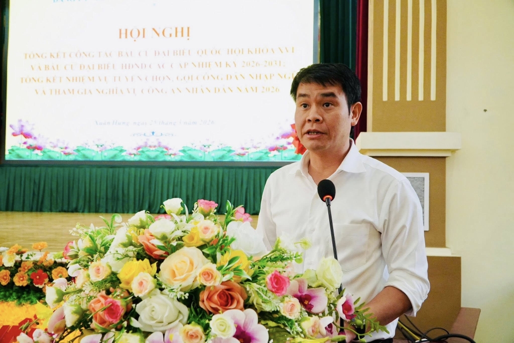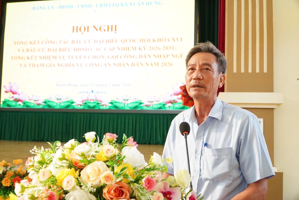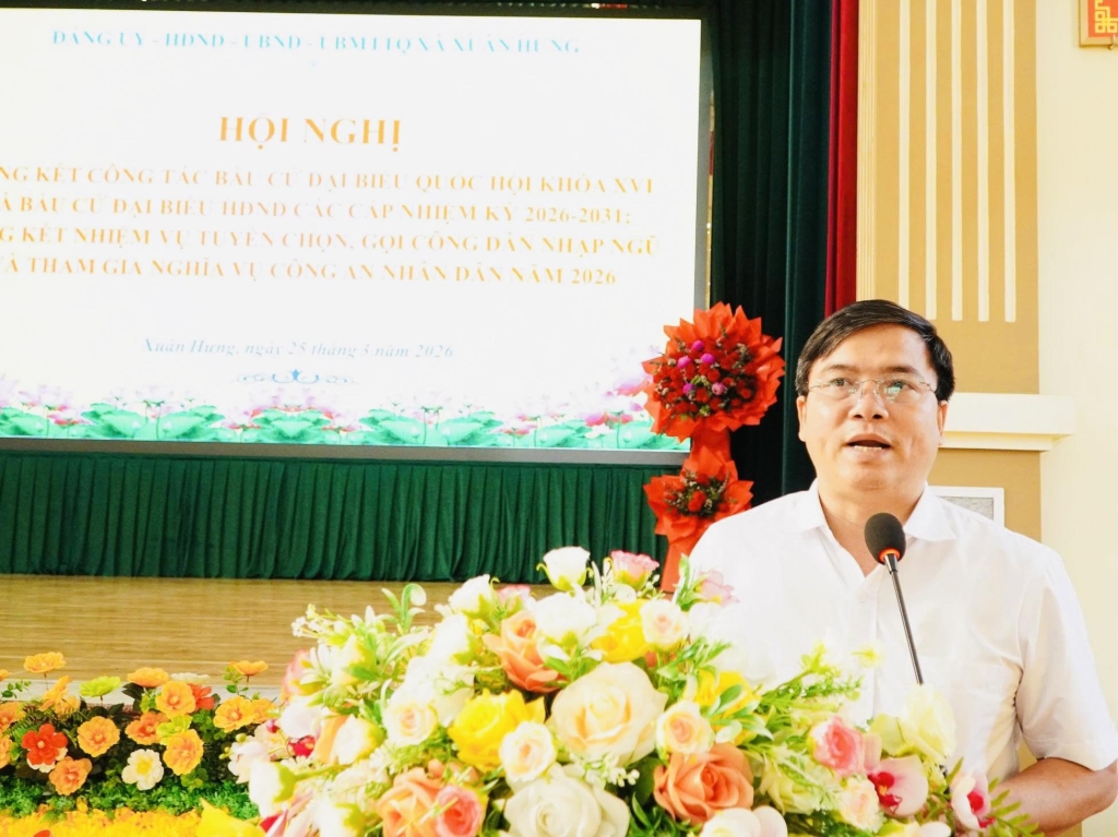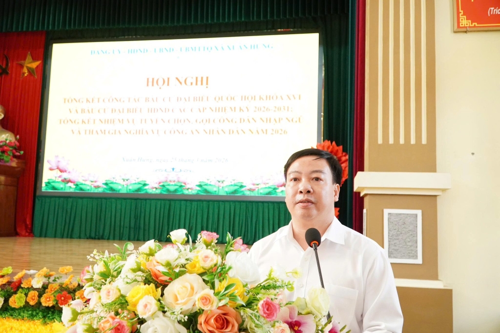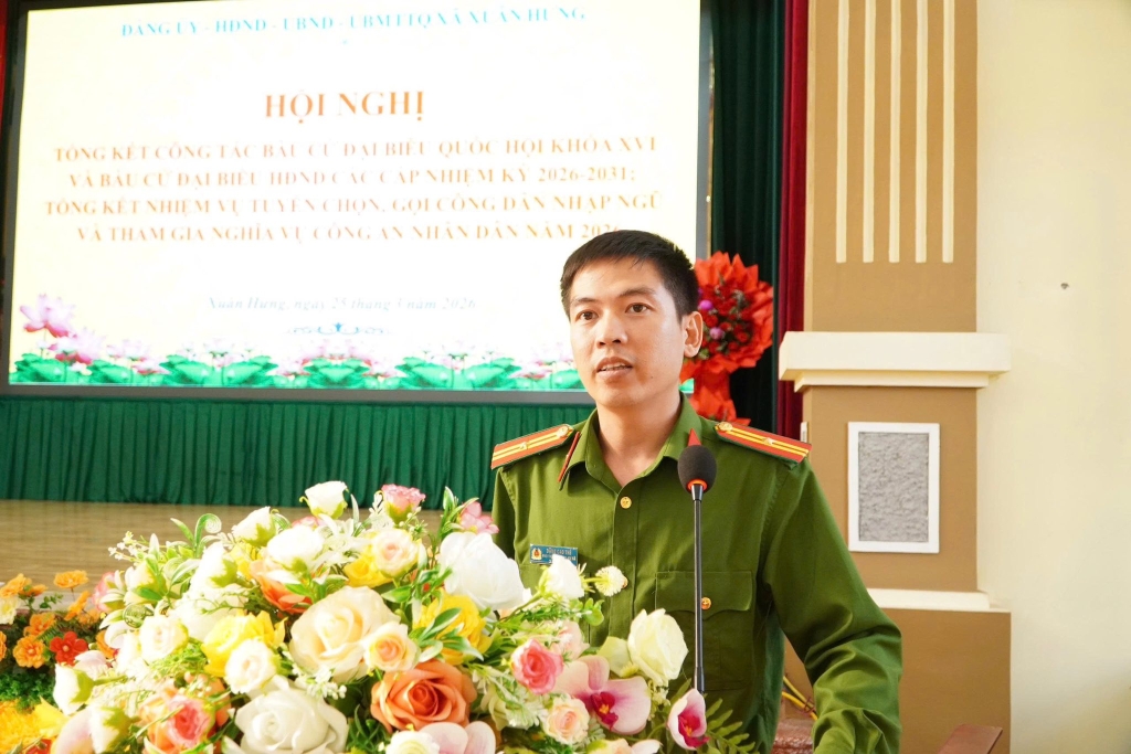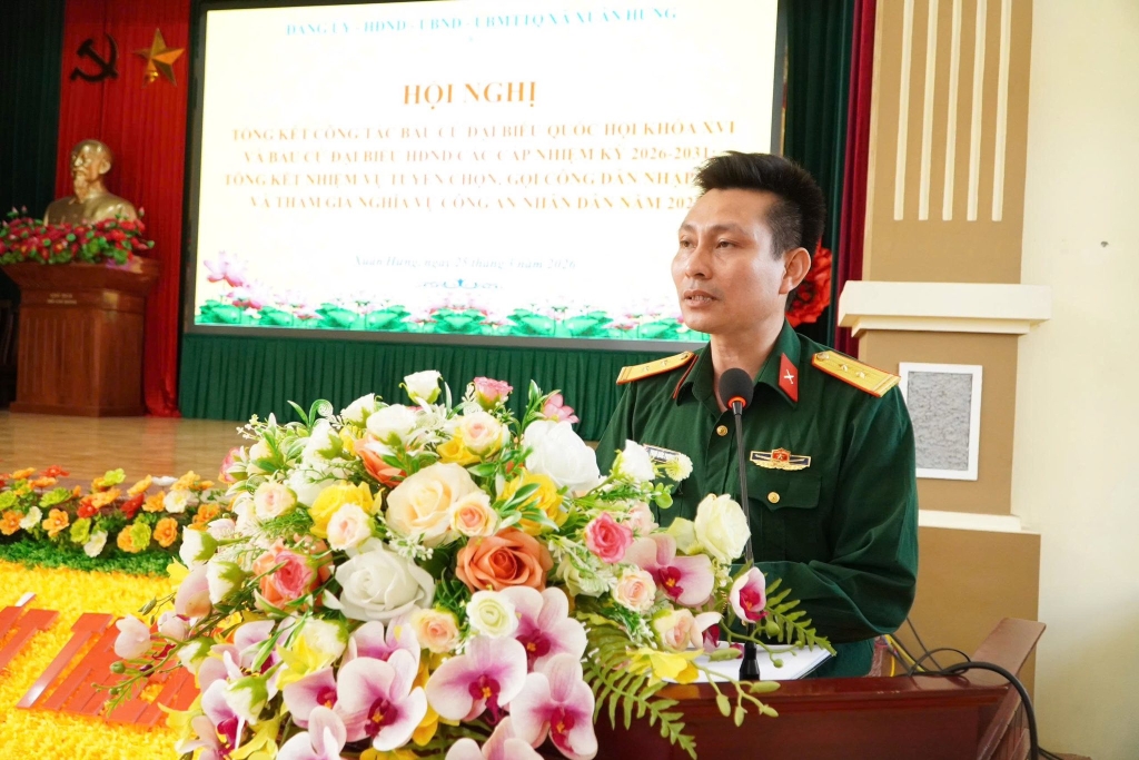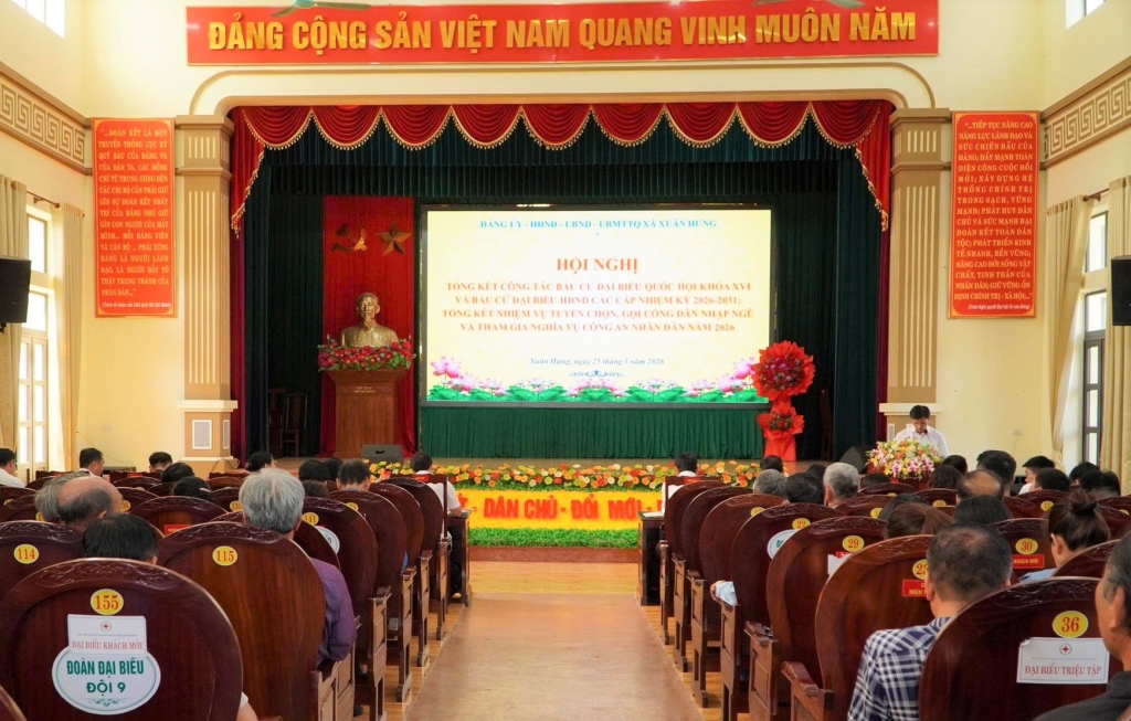 Xã Xuân Hưng tổ chức hội nghị tổng kết công tác bầu cử Đại biểu Quốc hội khóa XVI và đại biểu HĐND các cấp nhiệm kỳ 2026-2031, tổng kết nhiệm vụ tuyển chọn và gọi công dân nhập ngũ và tham gia nghĩa vụ công an nhân dân năm 2026