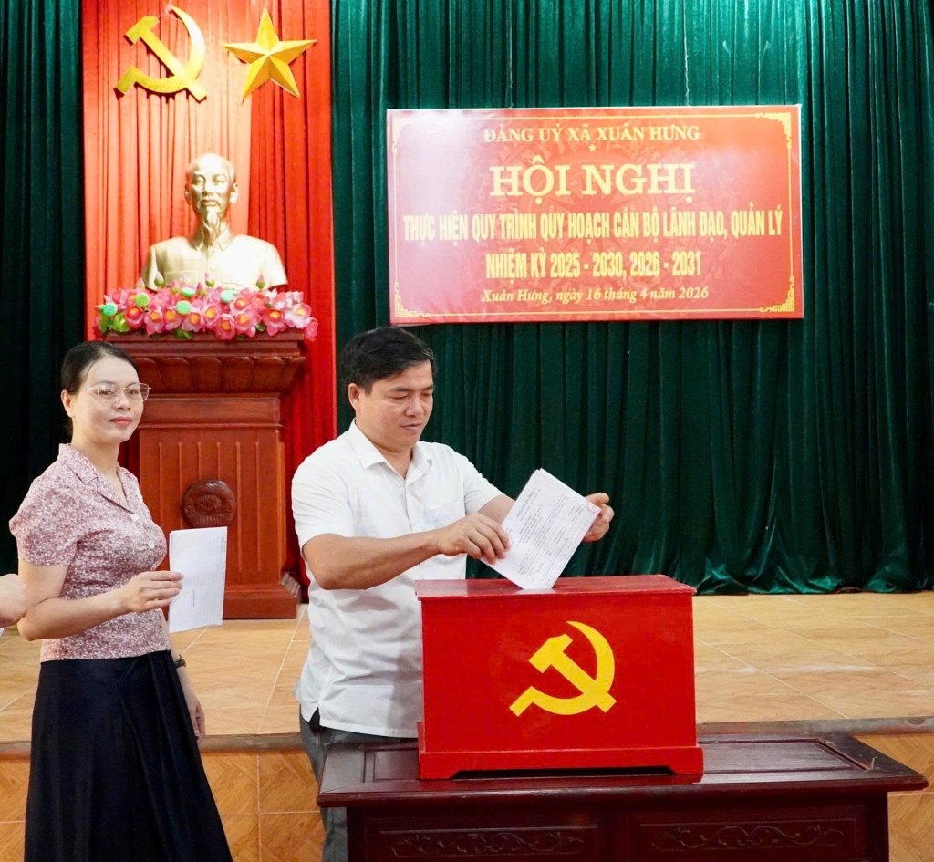 Thực hiện Kế hoạch số 37 ngày 19/3/2026 của Tỉnh ủy Ninh Bình về triển khai rà soát, bổ sung quy hoạch cán bộ lãnh đạo quản lý, nhiệm kỳ 2025-2030, 2026-2031, Sáng ngày 16/4, Ban Thường vụ Đảng ủy xã Xuân Hưng tổ chức Hội nghị thực hiện quy trình các bước quy hoạch cán bộ lãnh đạo, quản lý cấp xã nhiệm kỳ 2025–2030, 2026–2031.